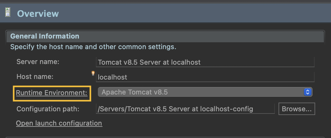 서버를 클릭해서 Runtime Environment 를 클릭해 줍니다.