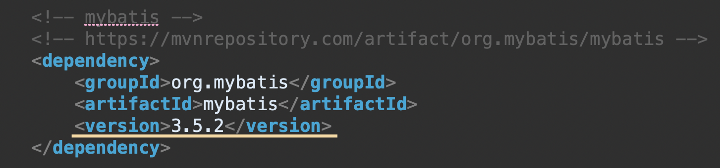pom.xml의 mybatis의 버전을 업데이트해 주면 된다.